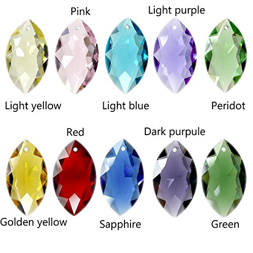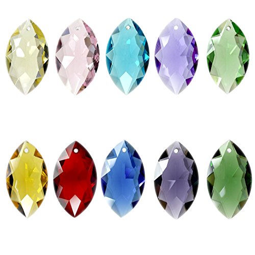 Fushing 10Pcs Horse Eye Mixed Colors Crystal Beads Drops Chandelier Pendants Prisms Suncatcher Window Hanging Ornament Decoration (38mm, Multi-color)