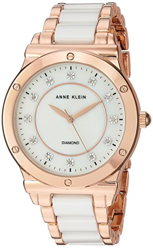 Anne Klein Women's AK/2902WTRG Diamond-Accented Rose Gold-Tone and White Ceramic Bracelet Watch