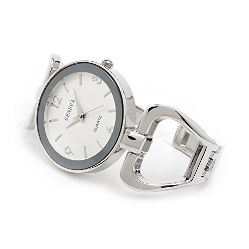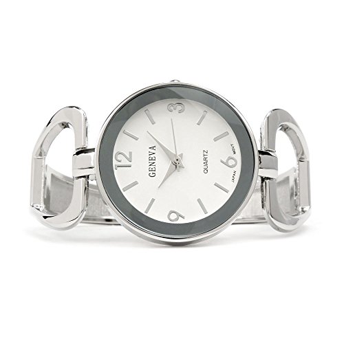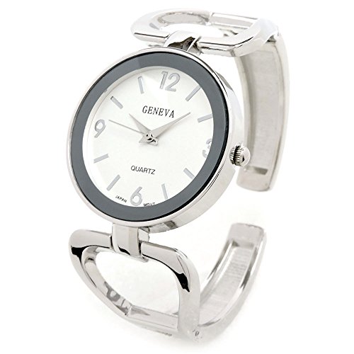 Geneva Silver Tone Metal Large Face Women's Bangle Cuff Watch