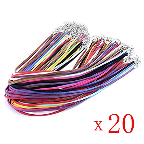 BoNaYuanDa 20pcs Leather Lace Necklace Cords with Lobster Clasps Extended Chain for DIY Jewelry Making 18" Mixcolor (45cm)