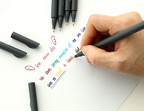 - HIGH QUALITY - 0.38 mm fine point, smooth, soft,water-based ink, dry safe, minimal bleed thru, Acid-free /Non-toxic Ink, these fiber-tipped pens create fine lines and intense water-based colors. Ideal for coloring books and bullet journal.