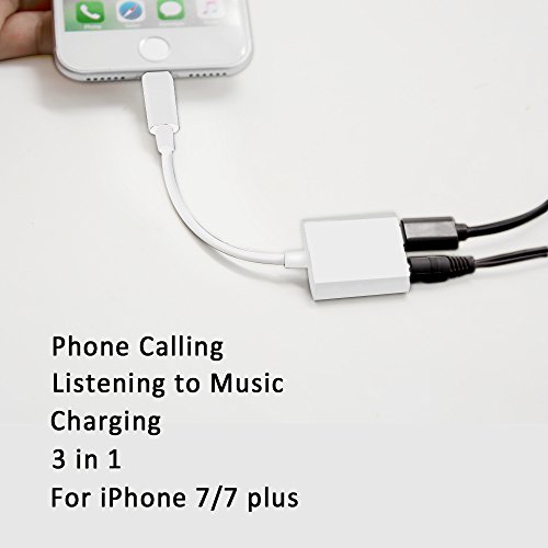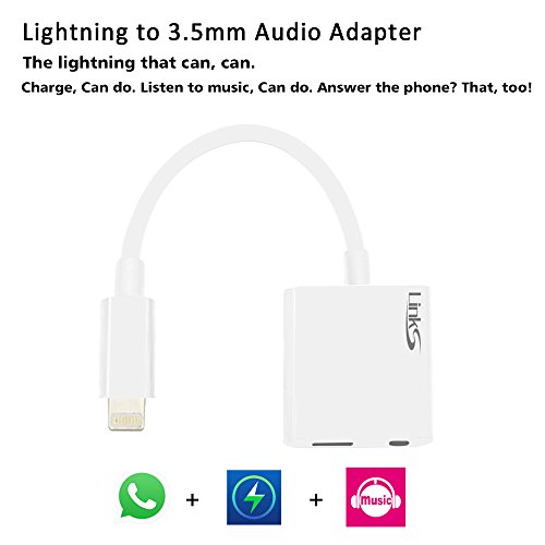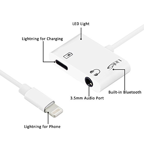 LinkS 3 in 1 Lightning with Bluetooth for Phone Call, Phone 7 Charger Adapter, 3.5mm Audio Adapter Stereo Jack Cable- Lightning to 3.5mm Aux Headphone Jack Audio Adapter, for iPhone 7 / 7 plus (White)