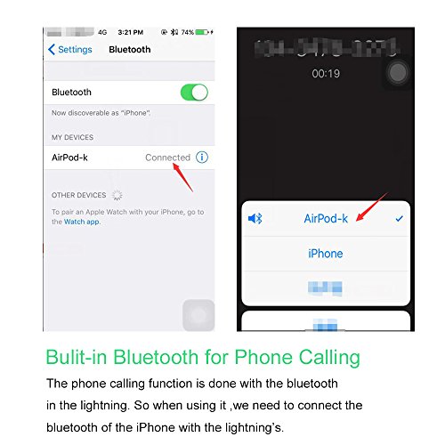 4.PHONE CALL FUNCTION: You need to link the Bluetooth from the lightning with your iPhone. And change the answer model from iPhone to Bluetooth when making a phone call.