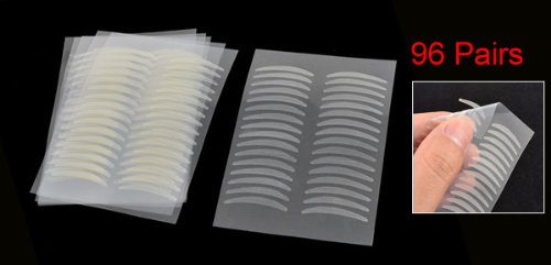 -. Feature : Product Name : Double Eyelid Tape;Material : Soft Plastic / Color : Clear;Each Tape Size : 25 x 2 mm / 1" x 0.08" (L*W) / Sheet Size : 84 x 60 mm / 3.3" x 2.4" (L*W) / Net Weight : 12g / Package Content : 96 Pairs x Double Eyelid Tape