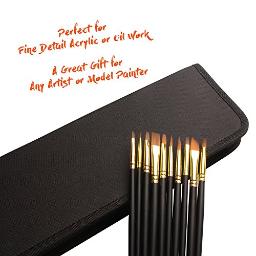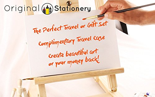 Original Stationery Paint Brushes 10 Set for Art & Craft Supplies w/ Case for Acrylic, Watercolour and Oil Painting. Variety of Sizes for Hobby & Professional Artists. Premium Durable Nylon Bristles