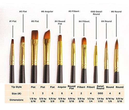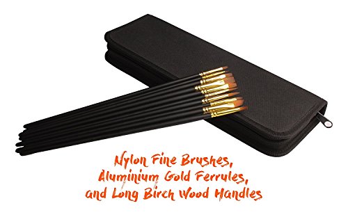 MIXED SET OF 10 NYLON FINE DETAIL BRUSHES - specially designed for maximum versatility and ease of use, this set of brushes is perfect for use with acrylics - but can be used for watercolor and oils too.