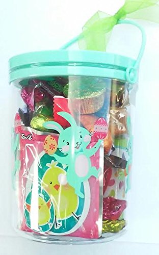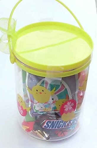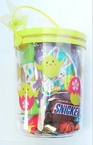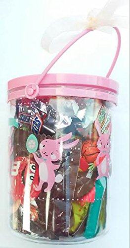-. Feature : 1 Easter Candy Canister 11 oz.- heavy plastic / Assorted Colors- Pink, Yellow, Pastel Green / Warheads, Snickers, Ghiradelli SP.R.Ing impressions, Twix, Milky way, bubblegum / self-inflating ballon, Jelly beans, Skittles, Sourpatch kids, M & M's / Chocolate eggs, Peanut butter cups,lollipops. So much candy!