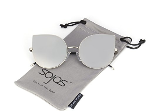 -. Title : SojoS Cat eye mirrored flat lenses Ultra Thin Light metal women Sunglasses SJ1022