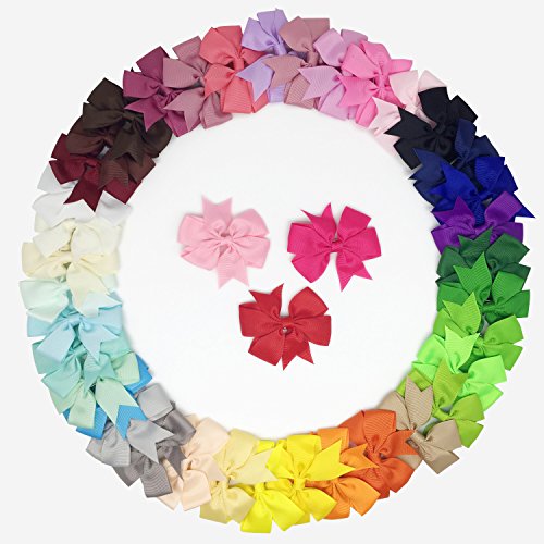 40 colors are available to match her outfits from left to right. These handmade hair bow clips will make the perfect every day accessory for any little girl.