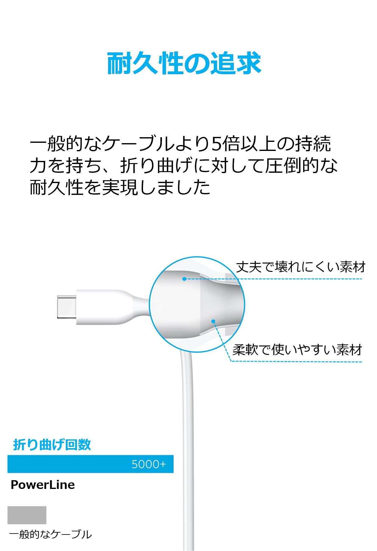 PowerLine adopts high durability materials internally, and it lasts more than five times longer than general cables.