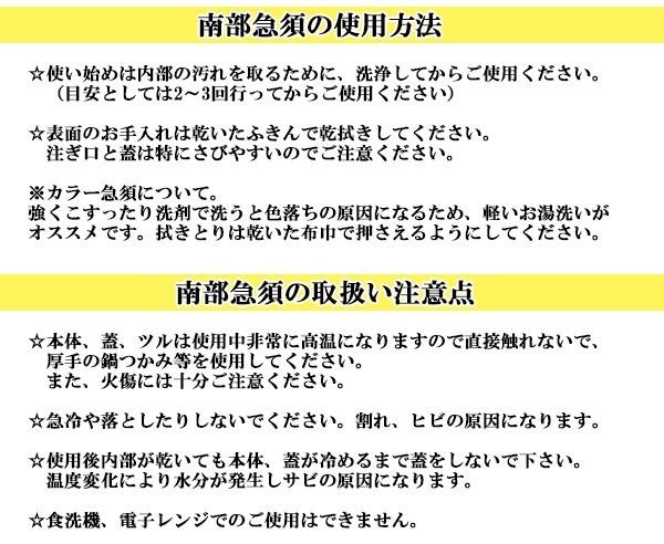 岩手県で受け継がれる伝統の技をご自宅に!!急須は内面ホーロー仕上げであるため、直接内側も洗えてお手入れも簡単。日々の生活にぜひご利用下さい。 |