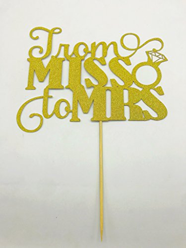 Miss to Mrs Bridal Shower Wedding Cake Topper Decoration Gold 1 Pack by ROUNDSQUARE