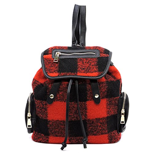 -. Title : Plaid Check Fleece Convertible Backpack Handbag