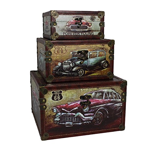 Urban Designs 7716045 Old Fashion Route 66 Cars 3Piece Decorative Box Set,Cars
