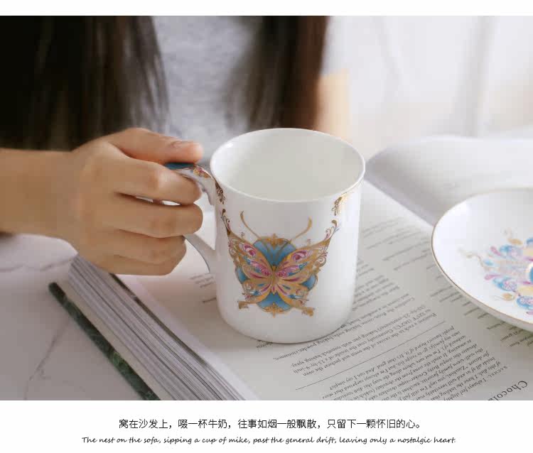 高档骨瓷马克杯咖啡杯欧式简约陶瓷水杯直筒红茶杯子情侣对杯创意