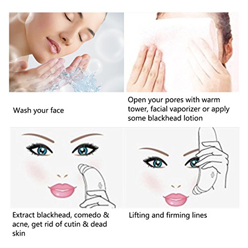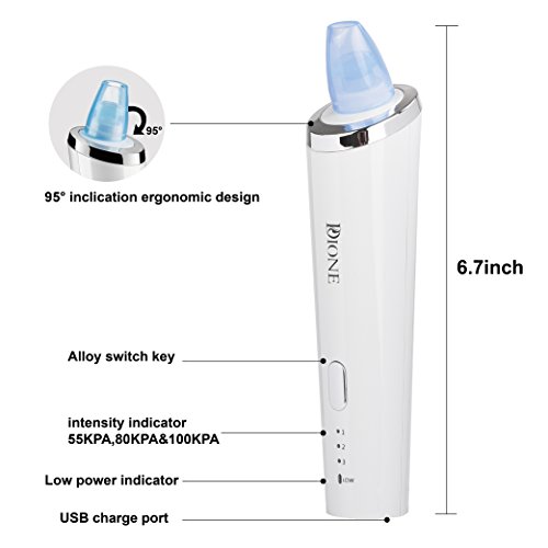 -. Feature : SOLUTION FOR FACIAL PROBLEMS: Treating coarse pore, rough skin, exfoliate dead skin, blackhead, dirt nose and fine lines with physical vacuum suction method, which improve skin condition without hurting your skin. / USER-FRIENDLY BEAUTY DEVICE: Present stable suction performance with patented design; 3 functional probes with 3 intensity levels can be adjusted to your beauty requirement. USB rechargeable with 650mAh high power capacity working without a noise. / MULTIFUNCTION SUCTION CAPS:large circular cap for deep facial pores' cleansing; small circular cap feather clean pores, and suitable for fragile and sensitive skin; oval cap for firming and lifting fine lines and improve skin elasticity. / SAFER TO USE: Different from other pore vacuum machines on the market, our product uses soft edge probes to avoid bruising and the suction pressure ranges from 55-100 kpa to give you a comfortable feeling. / TIPS: Do not use the device on one area of the skin for more than 2 seconds. Use a warm towel to open your pores before using this device. Choose the lowest suction setting at first until you get used to using it. We recommend using it for no more than 2 minutes, once or twice a week.