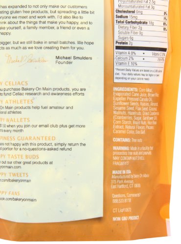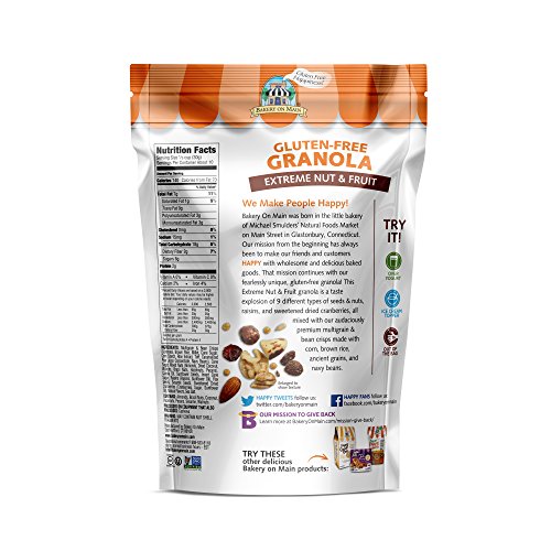 Bakery on Main's Extreme Fruit & Nut, Gluten Free Granola. Case of six, 12-Ounce Packages. A taste explosion of Almonds, Brazil Nuts, Pecans, Walnuts, Filberts, Cranberries, Raisins, Coconut and Apricots all mixed with Bakery on Main's trademark crunchy corn, rice and seed clusters.