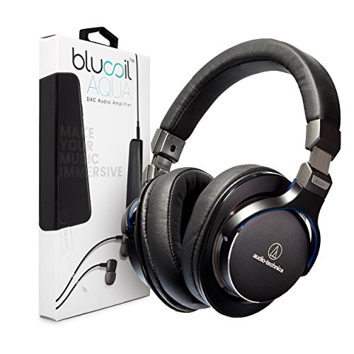 -. Feature : ATH-MSR7BK HIGH-RESOLUTION HEADPHONES: These over-ear high-resolution audio headphones are designed to reproduce Hi-Res Audio, allowing users to hear music the way it was intended. The over-ear headphones are outfitted with exclusive 45 mm True Motion Drivers, which utilize lightweight voice coils, a custom-mounted P.R.Inted circuit board, and specially designed diaphragm to improve transient response and minimize sound distortion for rich, detailed audio reproduction. / COMFORT MEETS QUALITY: You can listen with ease with the ultra-comfortable and soft memory foam earpads. Unlike other headphones, these don't make your head feel like it's caught in a vice grip. Because of how comfortable these headphones are, you can wear these for long periods of time, making them great for long sessions of studio work or live performances. Together with a detachable, one-sided cable, these headphones will make you ready for anything. / CRYSTAL CLEAR AUDIO: Stainless steel acoustic mesh resistor provides improved high-frequency response, while bass acoustic resistor delivers accurate low-frequency response. The Multi-layer Air Damping Technology provides a lightweight but strong housing for the drivers which reduces unwanted vibrations, maintaining audio quality. / BLUCOIL AQUA HEADPHONE AMPLIFIER: The Blucoil Aqua is the lightest headphone amplifier that intensifies the quality of your music and allows you to connect to devices such as smartphones and tablets. This battery-free amplifier uses DAC to translate information from your phone to your headphones to produce high-resolution audio quality. This exclusive Blucoil Aqua comes in the color black. / INCLUDES: Audio-Technica ATH-MSR7BK Over-Ear High-Resolution Audio Headphones (Black), detachable 1.2 m (3.9') standard cable, detachable 3.0 m (9.8') standard cable, detachable 1.2 m (3.9') cable with in-line controls and microphone for smartphones, 3.5 mm gold-plated stereo mini plug, L-shaped, and protective carrying pouch. Blucoil Aqua Compact Portable Hi-Res Headphone Amplifier (Black).