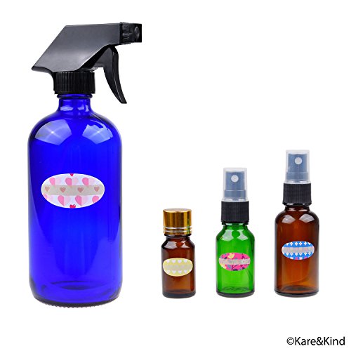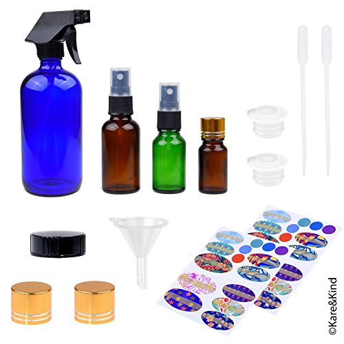 - This Kare & Kind Essential Oil Bottle Kit includes: 1 Trigger Sprayer (480ml/16oz), 2 Fine Mist Sprayers (30ml/1oz + 15ml/0.5oz), 1 Bottle (10ml/0.33oz), 2 Orifice Reducer Caps, 4 Sealing Caps, 78 Labels and 3 Filling Tools (2x Mini Pipette Dropper + 1x Mini Funnel)