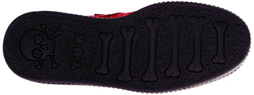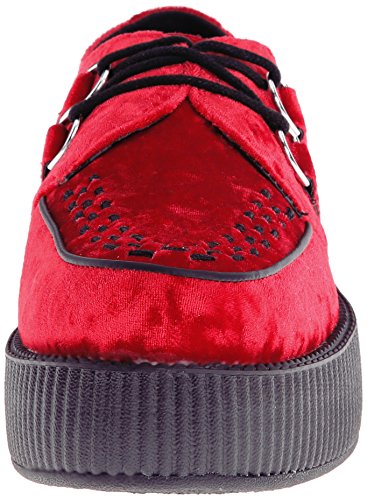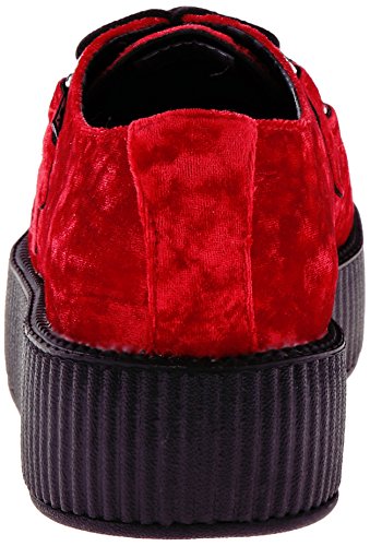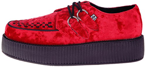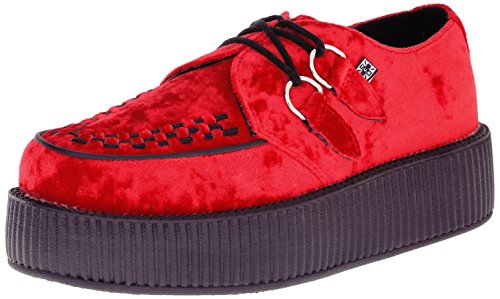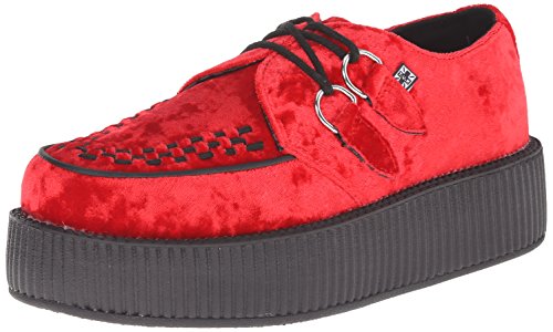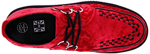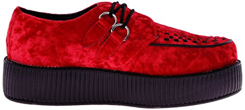 Our version of the ruby slipper, these red velvet Viva Mondo Creepers by T.U.K. Original Footwear will have you saying there's no place like home. Featuring a red velvet upper, black interlace, silver D-rings all on our on our new and improved Viva Mondo Creeper Sole that stands 1 3/4" tall.Feature