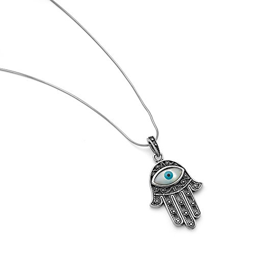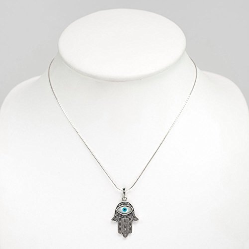 -. Title : 925 Oxidized Sterling Silver Hamsa Hand Of Fatima Amulet Evil Eye Rope Pendant Necklace 18"