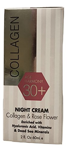 Age Harmony Collagen & Rose Flower 30+ Night Cream, 2 fl. oz. Enriched with Hyaluronic Acid, Vitamins and Dead Sea Minerals. Formula that acts against visible aging signs and dryness. 2 fl. oz., 60 ml, Made in Israel. Rose extract adds pure freshness and radiance.Feature