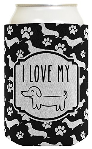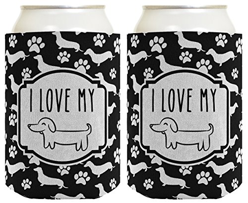 Dachshund Gifts I Love My Wiener Dog Art Dachshund Lover Gifts for Dachshund Lovers Dachshund Gag Gifts 2 Pack Can Coolie Drink Coolers Coolies Black