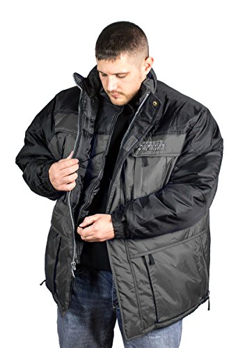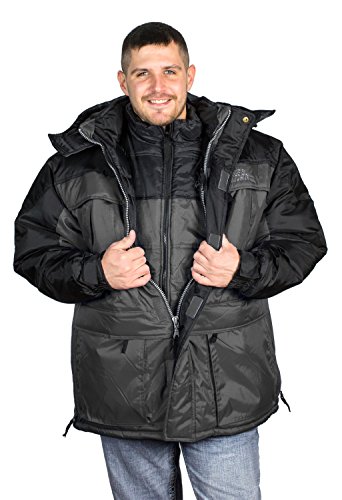 Studio : Freeze Defense Publisher : Freeze Defense Binding : Apparel Product Description Freeze Defense is a men's 3 in 1 winter coat system ready to protect you in the winter. A fully insulated jacket and zip-out vest comprise the 3 in 1 Freeze Defense men's 3 in 1 jacket. Freeze Defense is versatile as well as functional. The coat can be worn separately from the vest, or when nature throws its worst, zip the vest into the coat and you have a very warm winter defense parka. The coat and vest are both insulated. The coat features 9 zippered pockets along with an internal chest pocket. The coat also has an elastic waist cord, adjustable wrist cuffs, along with a removable insulated hood. The front of the coat is secured via a zipper as well as a storm flap to lock out the wind. The vest is also fully insulated and has 2 zippered pockets and 2 slash pockets. Both the coat and vest are water resistant. The Freeze Defense men's 3 in 1 winter jacket system is ready to defend you against any winter weather that comes your way. Both the coat and vest have a 100% nylon shell that is water resistant. The coat and vest are also lined in 100% nylon, and both are insulated with 100% polyester padding. The Freeze Defense men's 3 in 1 coat is ready to keep you warm, dry, stylish, and defended against winter weather. Perfect for everyday use, camping, hiking, hunting, snowboarding, skiing, or any other activity that requires a warm winter coat. 0