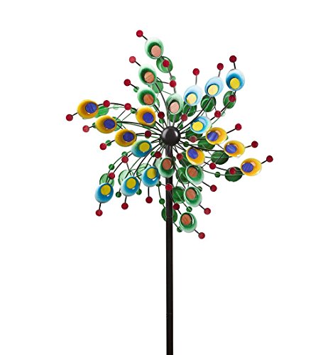 Outdoor Metal and Glass Confetti Garden Wind Spinner Decorative Colorful Windmill Yard Lawn Art 24 dia. x 10 D x 75 H Inches