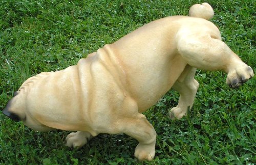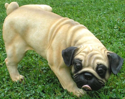 - Feature : This sweet pug lifts his leg to add a healthy dose of hilarity to your home or office without the mess / With his textured coat and adorable life-like face, this precious pup is sure to draw a second glance from onlookers / This statue measures approximately 9.5"H x 16.5"L / Felt pads on the underside of each paw keep the pup for scratching any delicate surfaces / NOTE: This sale is for ONE Peeing Pug dog ONLY.
