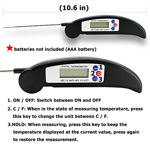 2 KINDS OF THERMOMETERS - Come with 2 different kinds of meat thermometer, one with long straight probe is small in size, easy to carry; another one of foldable probe, much faster to measure. Use one for food and another one for other things.