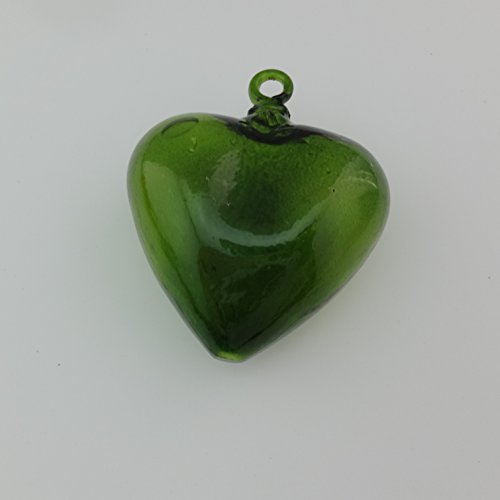 Hand Blown Heart 1 Green Large 4 X 4.5 Inches
