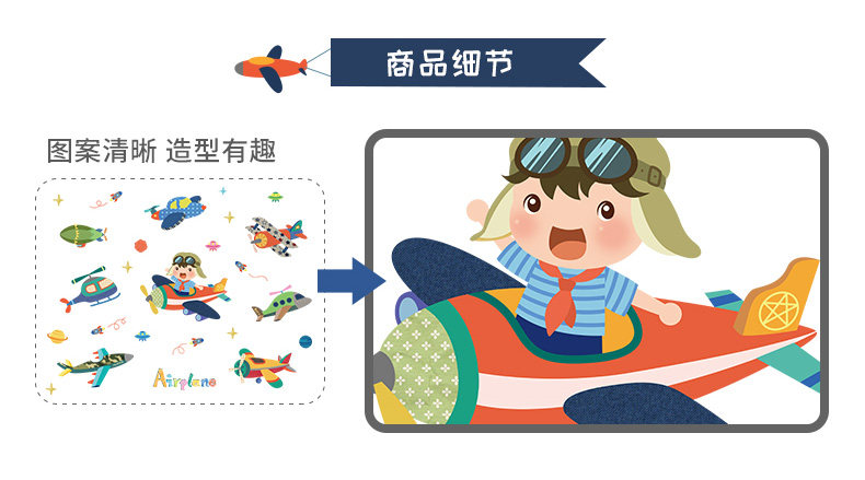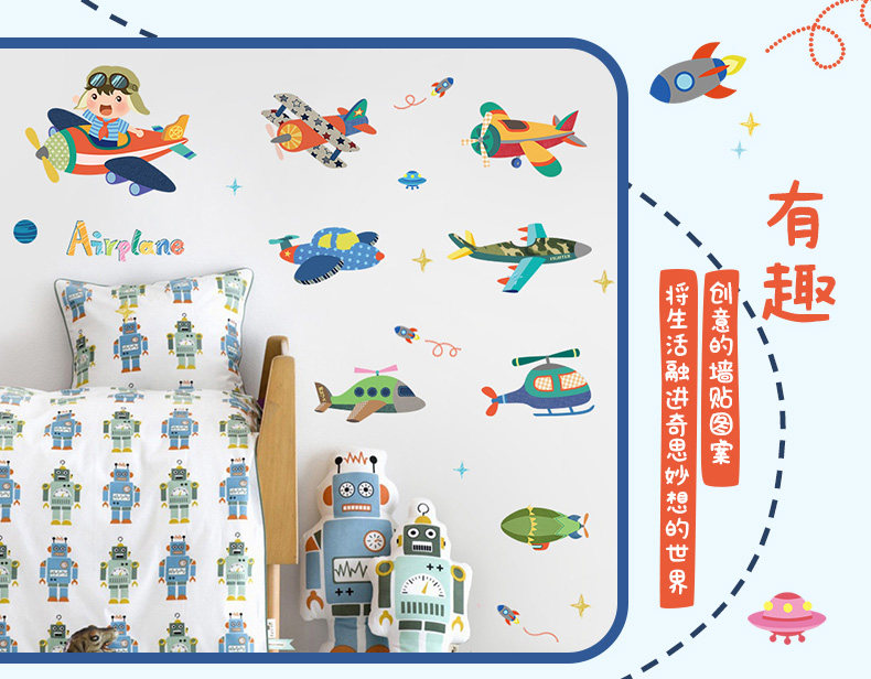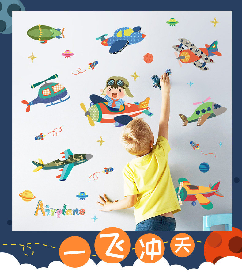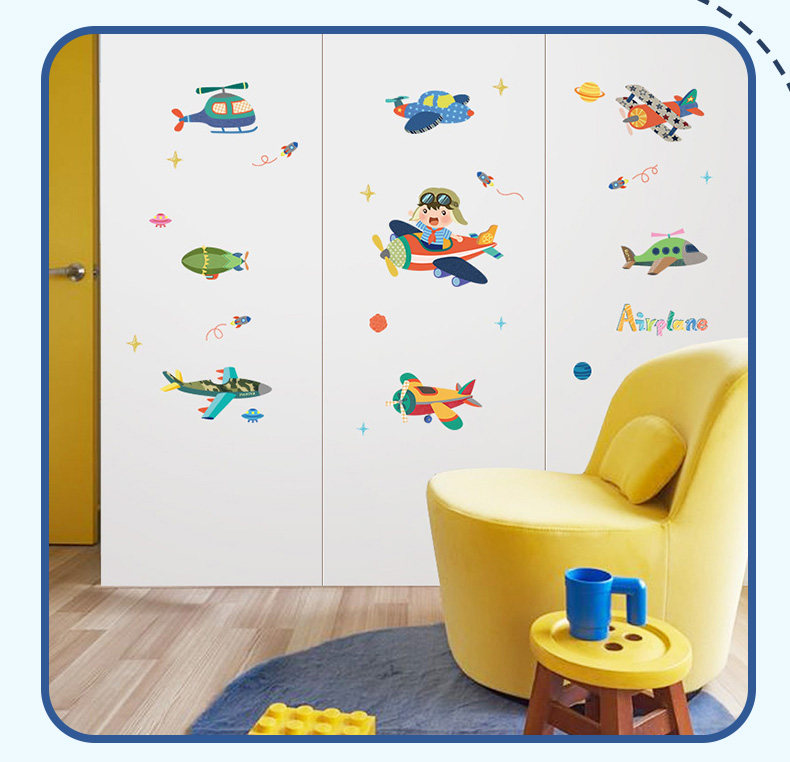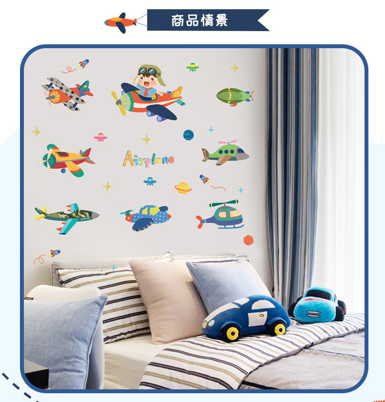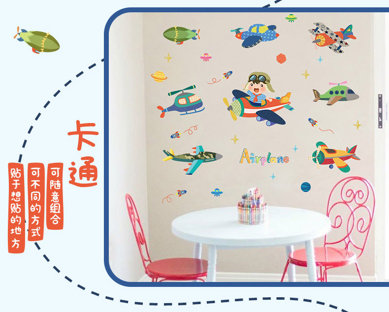 卡通飞机贴纸幼儿园儿童房卧室墙壁背景装饰墙贴可移除贴画随心帖