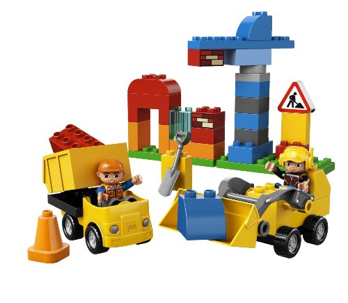 Studio : LEGO ReleaseDate : 2012-12-31 Publisher : LEGO Binding : Toy Product Description Drive, dump and load at the busy building construction site! Set out the road sign and traffic cone to start the day at the work zone! It's a busy day at the city construction site. The workmen are enjoying driving around in their dump truck and front loader. Move the bricks around with the tall crane! Includes 2 workmen LEGO® DUPLO® figures. 0