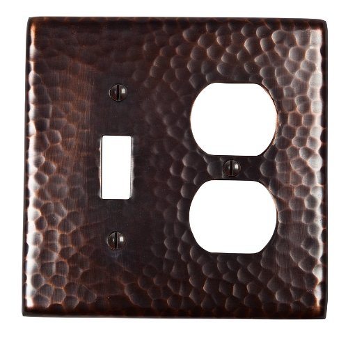 The Copper Factory CF126AN Solid Hammered Copper Single Switch and Duplex Receptacle Combination Plate, Antique Copper Finish