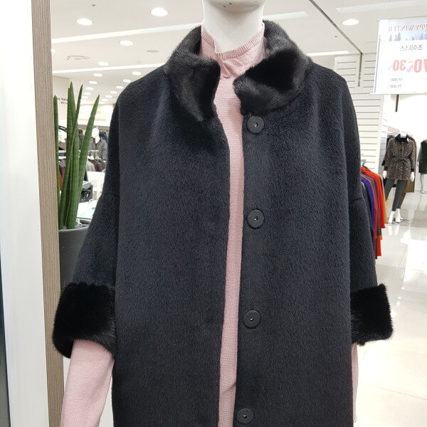 알파카 밍크 트리밍 코트 차이나넥과 칠부 소매의 라글란 핏의세련되고 고급스런 코트입니다