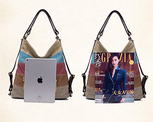 WLE Women's Canvas two-Color Shopper Tote Shoulder Bag for women girls ladies.