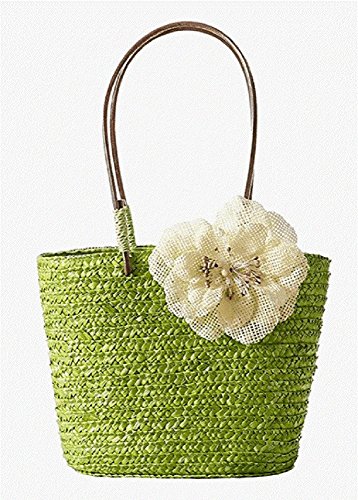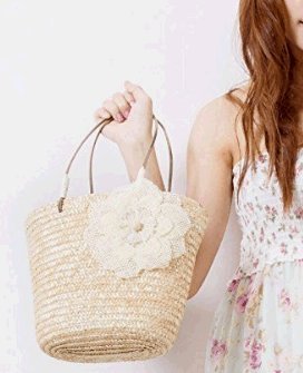 Sagittarius.kyt Handmade woven straw leather handbag with flower color variation