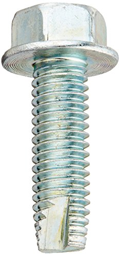 Steel Thread Cutting Screw, Zinc Plated Finish, Hex Washer Head, Type 23, 3/8"-16 Thread Size, 1-1/4" Length (Pack of 10)