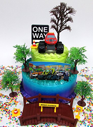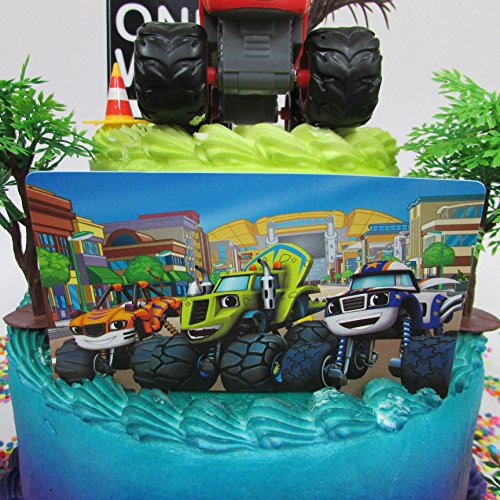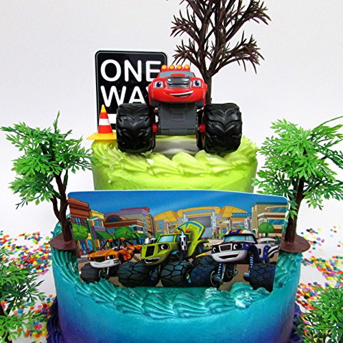 Blaze and the Monster Machines Birthday Cake Topper Set Featuring Blaze and Other Decorative Themed Accessories