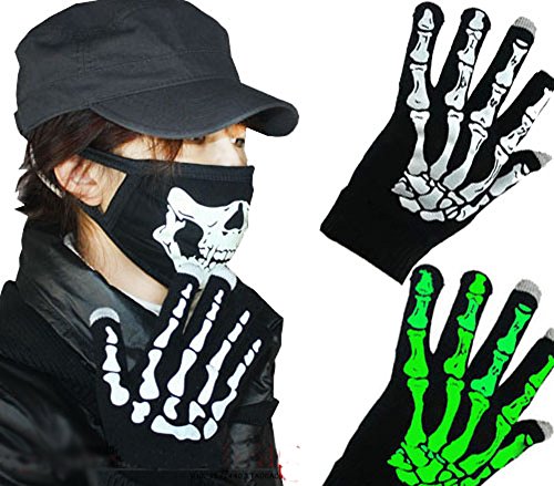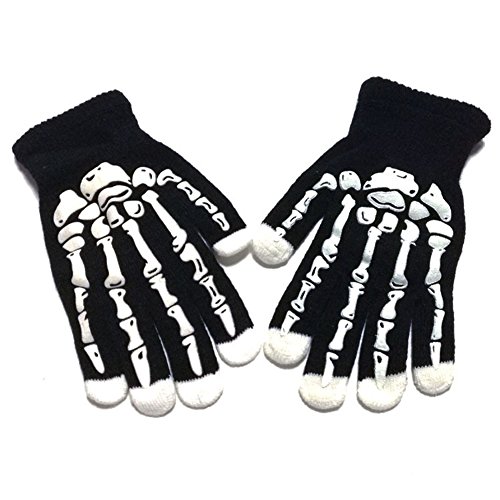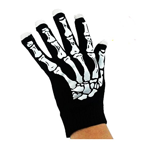 Glowing Gloves Glow in The Dark Cotton Gloves Skeleton Skull Gloves for Party with Two Touchscreen Pen