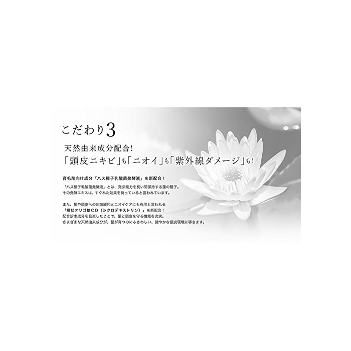 머리카락과 두피의 얼룩을 효과적으로 제거 하면서,피지 분비를 마일드로 콘트롤 하여 육모 촉진을 위한 두피 환경을 조절고 있습니다.