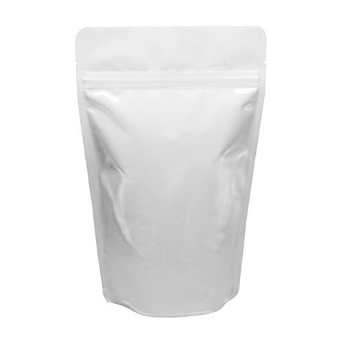 Baking Addict Wholesale Foil Stand-Up Heat Sealable Resealable Zip Pouch Food Storage Packaging Bags with Tear Notch, 16 oz/1 lb, White, 100 Count