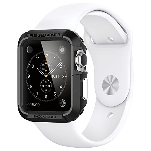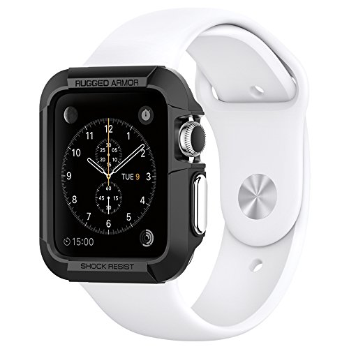 Apple Watch Case, Spigen [Rugged Armor] Resilient [Black] - [Include 2 Screen Protectors] Ultimate protection from drops and impacts for Apple Watch 42mm (2015) - Black (SGP11496)