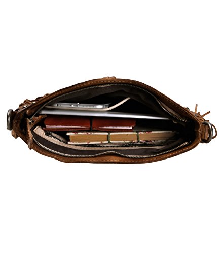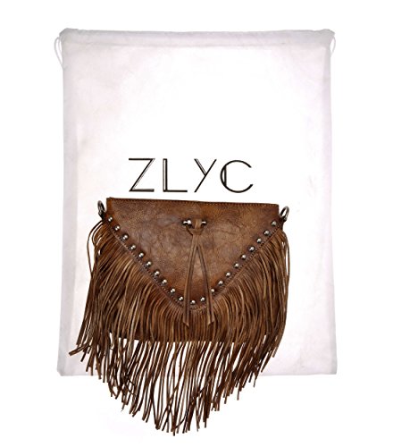 -. Brand : ZLYC -. Department : womens -. Feature : Material: Dip-dye leather / Size: 10.6 X 8.7 inches / 27 X 22 cm / Perfectly sized with boho look. This petite dip-dye leather bag features fringe edge, and a adjustable shoulder strap. / Pouch style with zip closure and zip back pocket. Suits both daily and vacation uses perfectly (and fits your lip balm, keys and phone). / Please note: As leather is a natural material, each bag varies slightly in texture and color - and has a character all its own. -. PackageQuantity : 1 -. ProductGroup : Shoes -. ProductTypeName : HANDBAG -. Title : ZLYC Women Handmade Dip Dye Leather Fringe Bohemian Tassel Studed Cross Body Bag