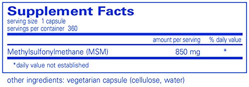 Pure Encapsulations MSM (methylsulfonylmethane or dimethylsulfone) is a source of organic sulfur found naturally in the human body. MSM, the major metabolite of DMSO (dimethyl sulfoxide), is 34% elemental sulfur, a compound which is crucial in maintaining healthy tissues. While sulfur supports many functions, it is well known for maintaining connective tissue health. Sulfur also supports tissue containing significant amounts of collagen and keratin, including hair, skin, and nails. Sulfur is essential in methionine, cysteine and serum protein metabolism. Recent, preliminary evidence suggests that MSM provides potential support for healthy immune and respiratory function.*
