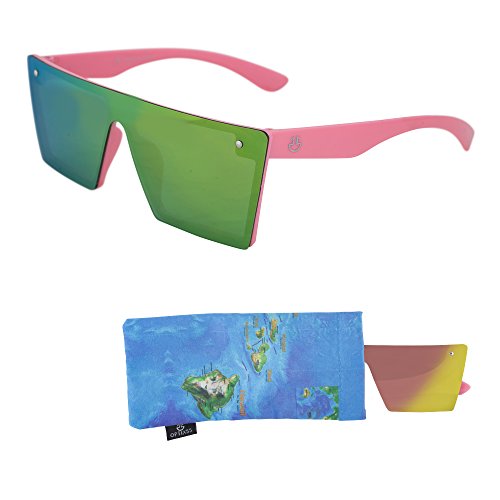 Product Description STYLISH UV PROTECTION FOR TEENS At the beach or on the go, even when it's overcast, the sun's rays are always beating down on us. But those sunny rays that feel so great on our skin can be damaging, especially to your eyes. Protect them in style with these fun, fashionable REVO sunglasses from Optix 55 which are designed to offer 100% UV Protection while looking fantastic. About This Product: ? 100% UV Protection ? Mirrored REVO Lenses ? Neutralizes Glare, Objects Appear Clearer Brighter ? Durable Construction ? Assorted Colors ? Designed For Teens 12-18 Years Old ? Durable Design For Long-lasting Performance ? Perfect For High Impact Activities ? Spring Pouch Included With Optix 55's REVO Sunglasses For Teens you'll look great while keeping your eyes safe from the sun. It's a 2 for 1 deal that can't be beat. Our REVO lenses won't obstruct your vision will reduce glare, making objects appear brighter clearer so you can go about your daily activities as usual-and stop squinting at your phone! We strive to bring you the best in fashionable eyewear with these sunglasses that are sure to turn heads set trends, all while protecting your eyes from damaging sun rays. These mirrored shades are perfect for a day at the beach, the pool any other outdoor excursions. These sunglasses come with a durable spring pouch in a matching color emblazoned with a map of Hawaii, to lend a tropical air to your ensemble. MANY COLOR STYLE COMBINATIONS. Available In: - Wayfarer Glasses (Assorted Colors) - Square Sunglasses (Assorted Colors) - Aviator Sunglasses (Assorted Colors) - Round Sunglasses (Assorted Colors) These shades are specifically designed to accommodate high impact activities and can withstand whatever your day throws at you. Don't sacrifice safety for style. Choose both! With Optix 55. 0