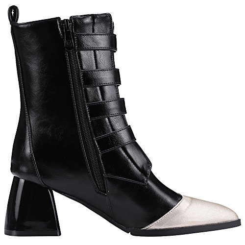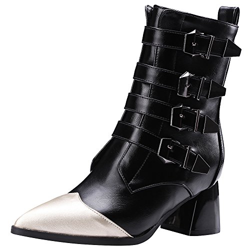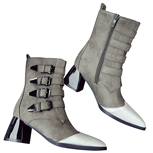 Binding : Apparel Product Description 2017 newly women autumn-winter ankle boots with warm short plush lining. Cool western style gladiator boots with multiple buckle straps and rock style pointy cap toe. Side zip to wear, easy and convenient to put on and take off. 6cm spool heel can improve your temperament by increasing your height, but also comfortable to walk. 0