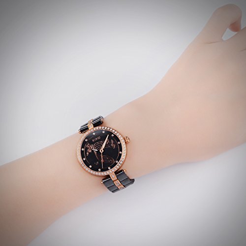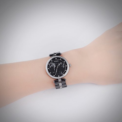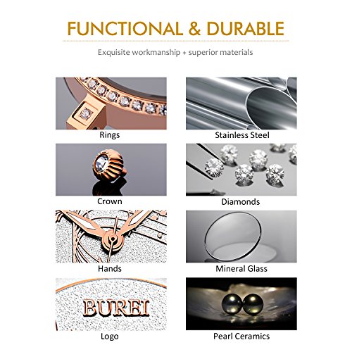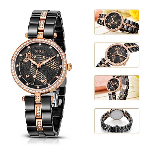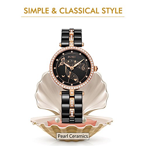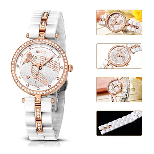 -. Title : BUREI Women's Dress Elegant Watch Wirstwatch with Silver Diamond Crystals Case and White Ceramic Bracelet