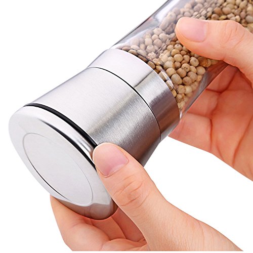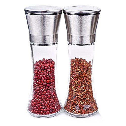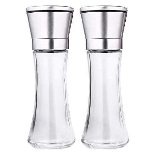 Premium Stainless Steel Salt and Pepper Grinder Set of 2 Glass Bottle Mills Salt Shaker and Pepper Shaker Set with Adjustable Ceramic Rotor